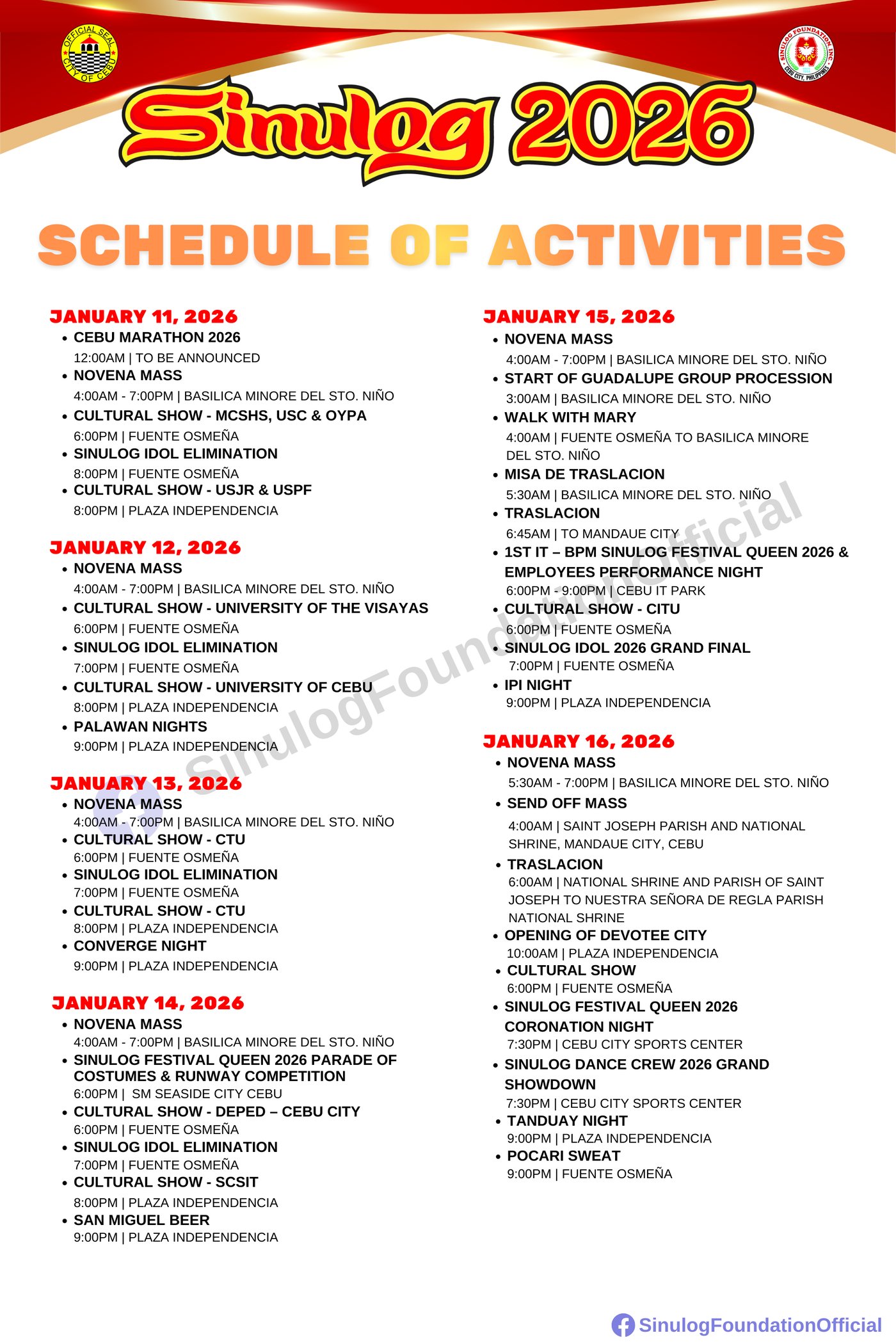 Sinulog 2026 Schedule of Activities